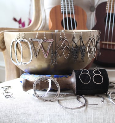 Explore unique handcrafted silver pieces by Laura, an independent silversmith, inspired by Rajasthani artisans and her own roots in Nordic culture - Laura's family is from Scotland originally, and her celtic influence is often seen in her designs, from the hammered and etched effects on her hoop earrings to her reticulated pendants.